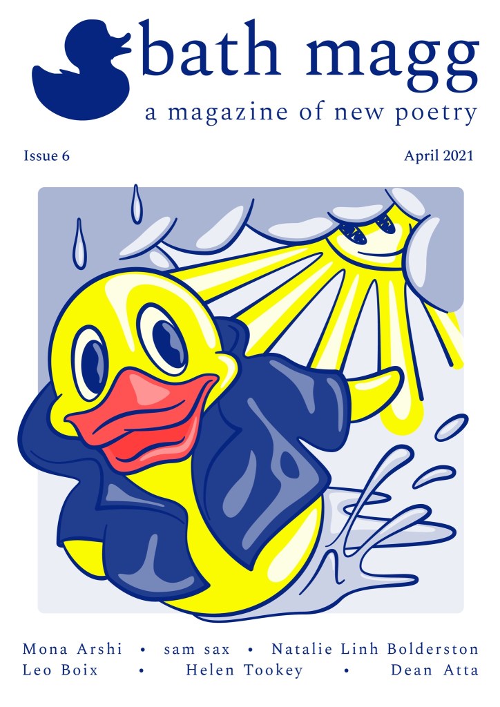 My poems have appeared in bath magg, The Rialto, Finished Creatures, Shearsman Magazine, Volume Poetry, Ink Sweat & Tears, and Anthropocene Poetry, among others. In 2022, with composer Christopher Cook, I won the Rosamond Prize. In 2023 I was highly commended in the Plough Prize.